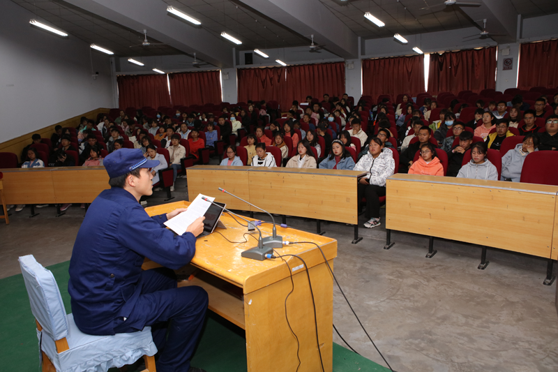 疏散演练前,首先由高台县消防救援大队助理工程师刘超为师生做了“消防安全知识讲座”,刘超工程师结合发生在国内的多起高校实验室和危化品仓储消防案例详细介绍了化学实验室火灾预防知识、危化品处置方案、常见灭火器和消防器材的使用方法、精密仪器火灾扑救等知识。详实的案例,精彩的讲解让在场师生深刻认识到到“ 隐患险于明火,防范胜于救灾,责任重于泰山”的重要意义。