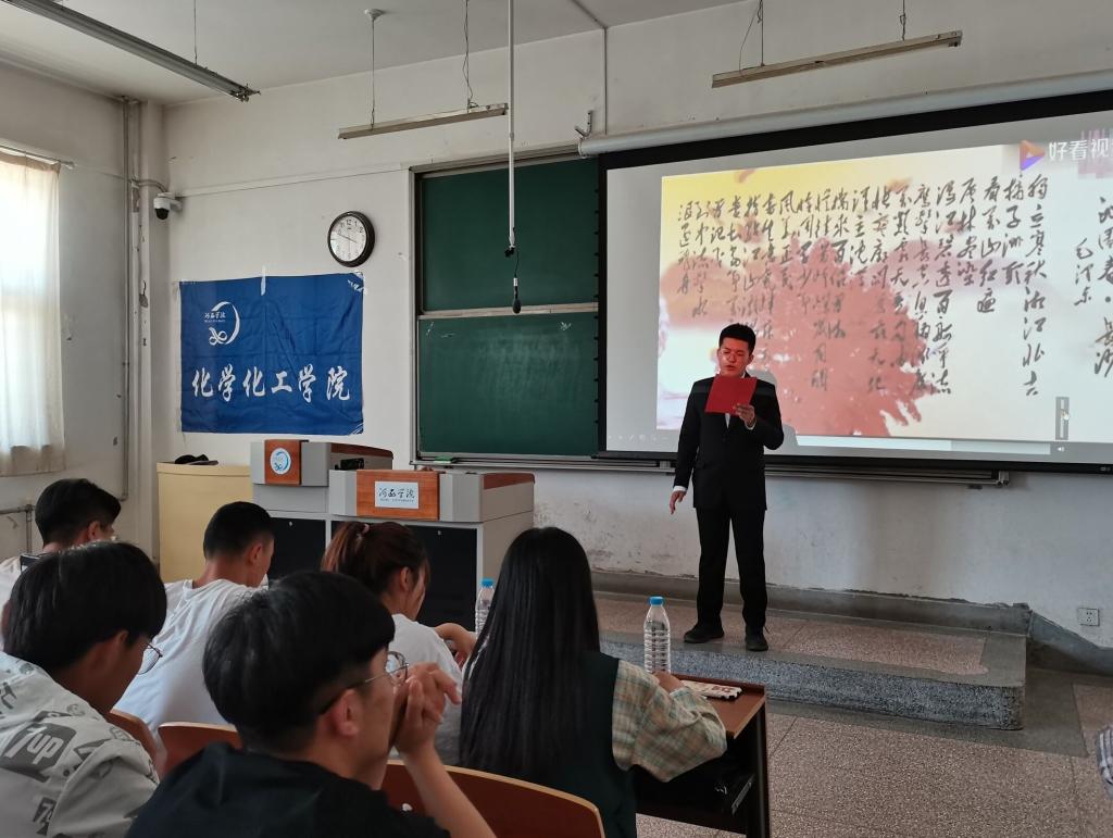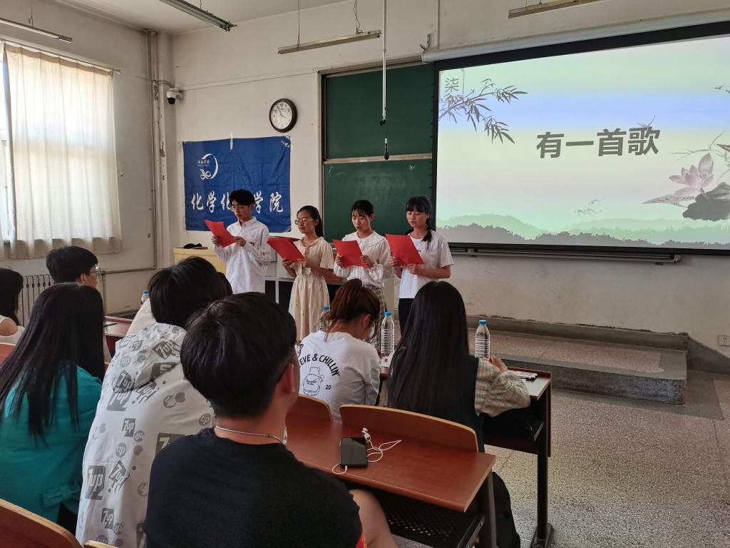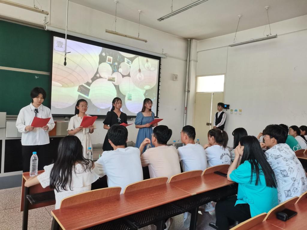 为提高师生思想道德修养和文明素质,培养当代大学生的兴趣爱好,丰富课余生活,做到传统文化的继承与弘扬。我院于2021年5月30日于八教107举办第四届“国学经典诵读大赛”。陈敏、杨繁、汪浩、孙丽丽、巨晓慧、李亚君为出席本次活动的嘉宾,各班班长、团支书、学生代表及全体学生会工作人员参加此次活动。