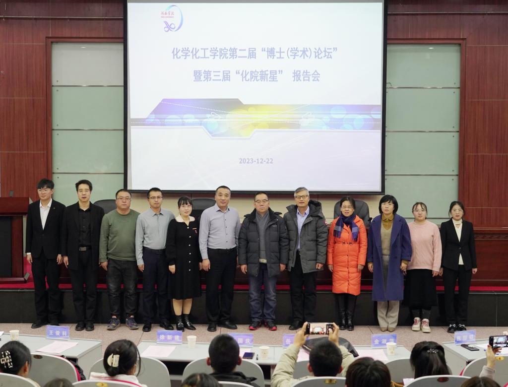 第二届“博士(学术)论坛”旨在总结2023年科研教学工作,展示学院教师最新的科研成果。刘晓晴博士、邱东博士和新入职的雷永刚博士分别作了题为“多功能聚两性离子抗菌水凝胶的合成及性能研究”、“吡啶季铵盐反应中的卤素作用”和“清洁太阳能的转化和应用”的报告,优秀校友曾潮元博士在线作了题为“手性氨基酸的快速检测及应用研究”的学术报告。